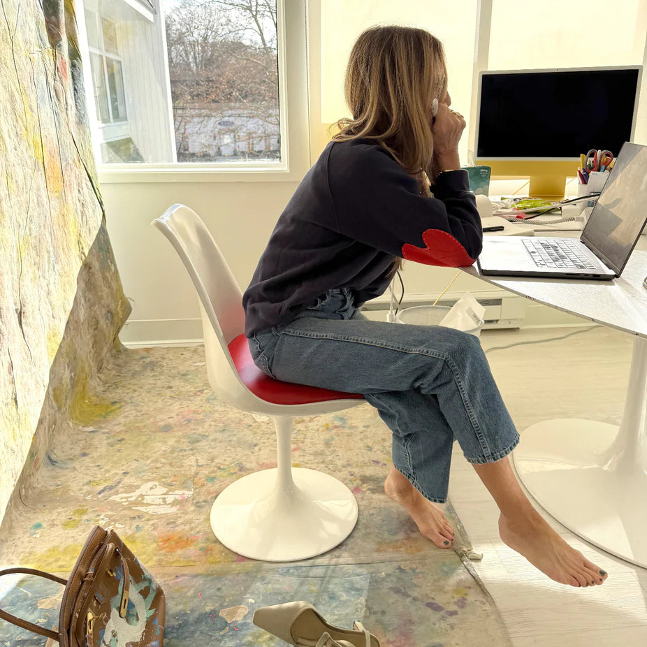 Kerri's Benton Imperfect Heart Patch Sweatshirt is crafted from our softest cotton fleece, offering a loose, comfortable fit. Contrast heart elbows and raglan sleeves, adds a bit of fun to your everyday sweat set look. Pairs back to the Weekend Barb Sweatpant and just about anything else.