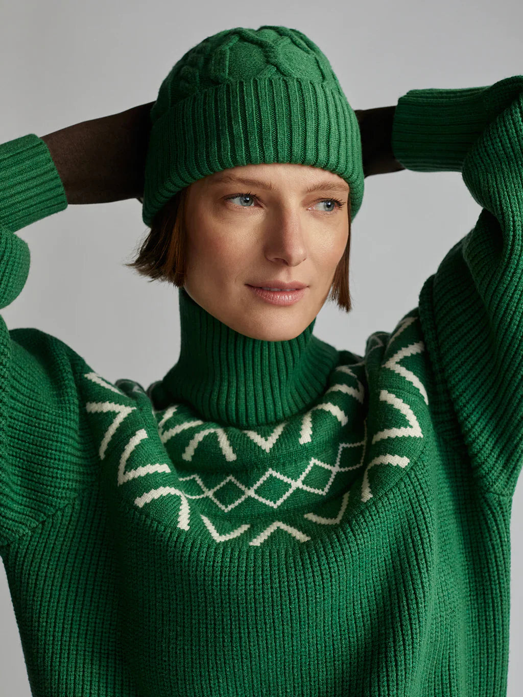 Discover timeless style with Varley's Marcie Fairisle Yoke Knit. Elevate your winter look with this premium, fairisle-patterned knitwear that blends warmth and sophistication effortlessly.