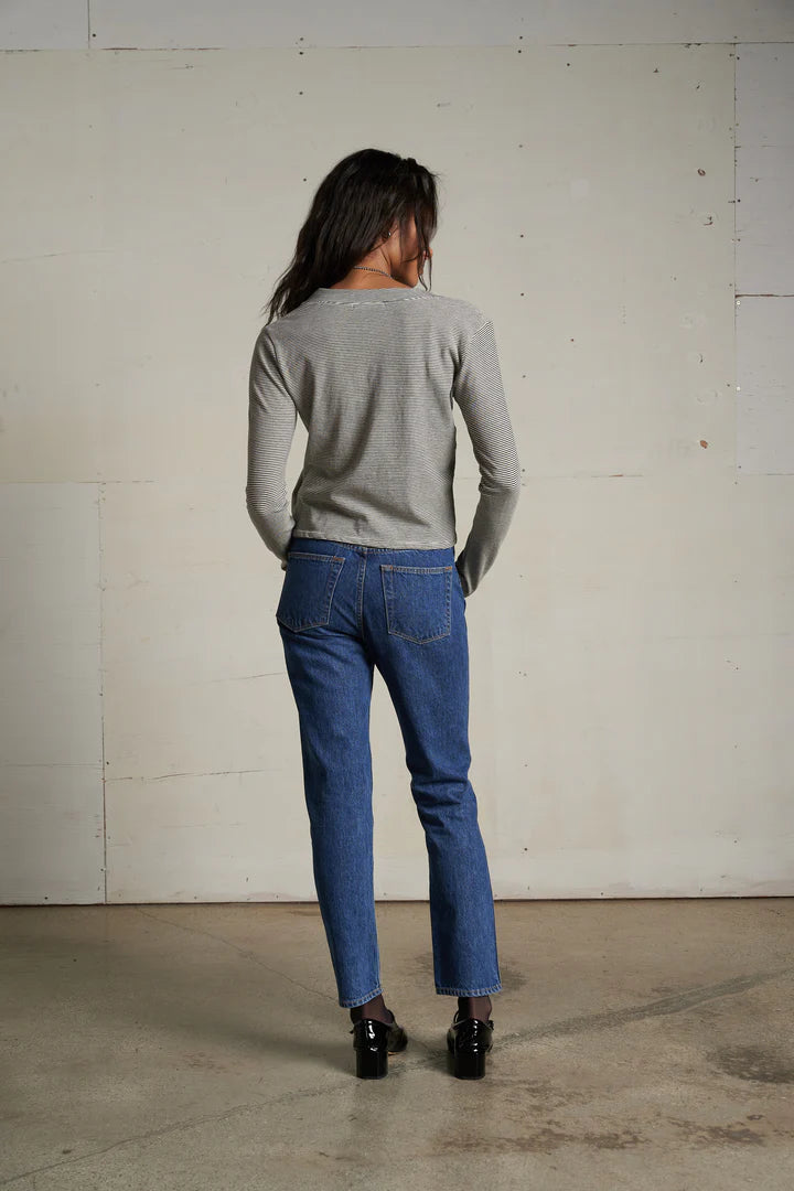 due to popular demand, fiona is our new long sleeve v neck for fall in our signature recycled cotton blend. this fabric was inspired by a vintage shirt we found years ago at the paris flea market that we've hung onto forever.