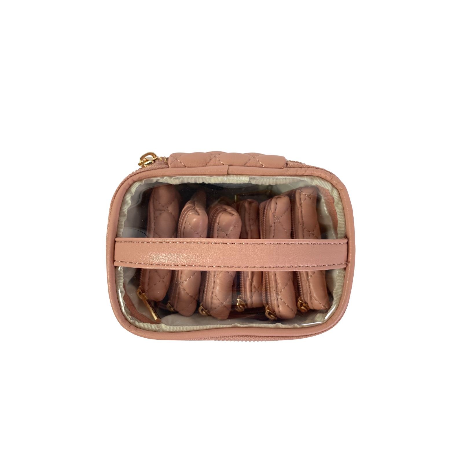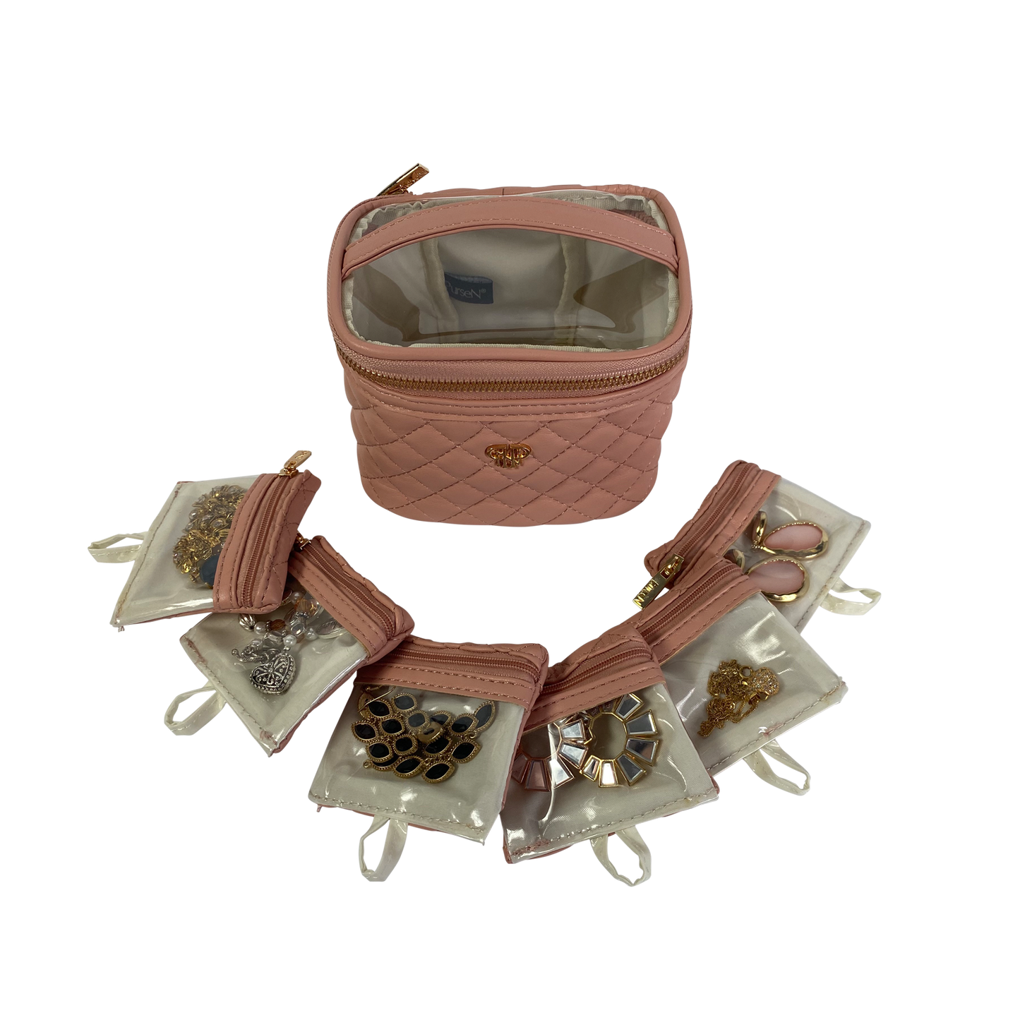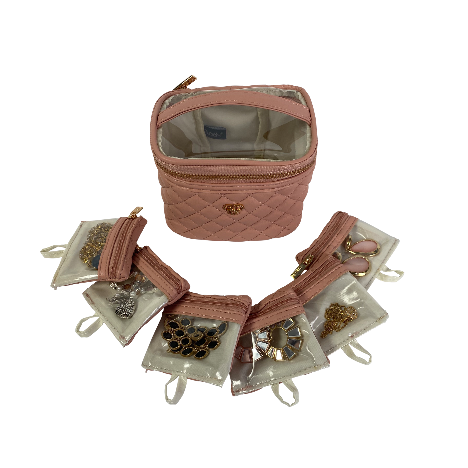 There is nothing more frustrating than misplacing one earring from a set you love. The duo-tone Gold Luster Getaway Jewelry Case with clear front removable pouches is the solution. Keep your earrings, rings, bracelets and more neatly organized and easy to see. This is the perfect travel case for keeping small to medium jewelry from getting lost or tangled at home or on-the-go.