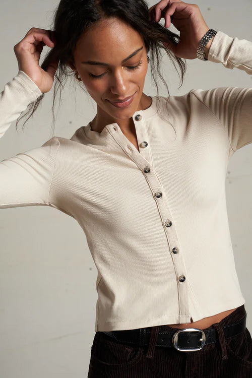 luxe rib crewneck cardigan