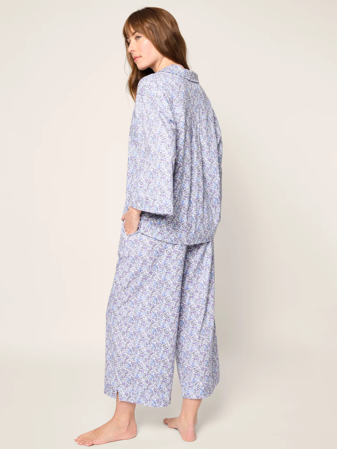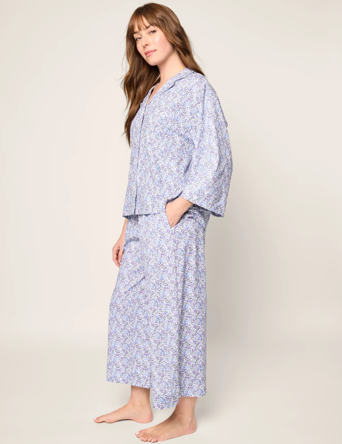 Our wide-leg Pima Cotton pajama set is the apex of comfort and feminine tailoring: a well-considered three-quarter length sleeve, for example, and a more generous pant leg that results in that refined swish-swish sensation at your ankle as you walk down a long hallway.