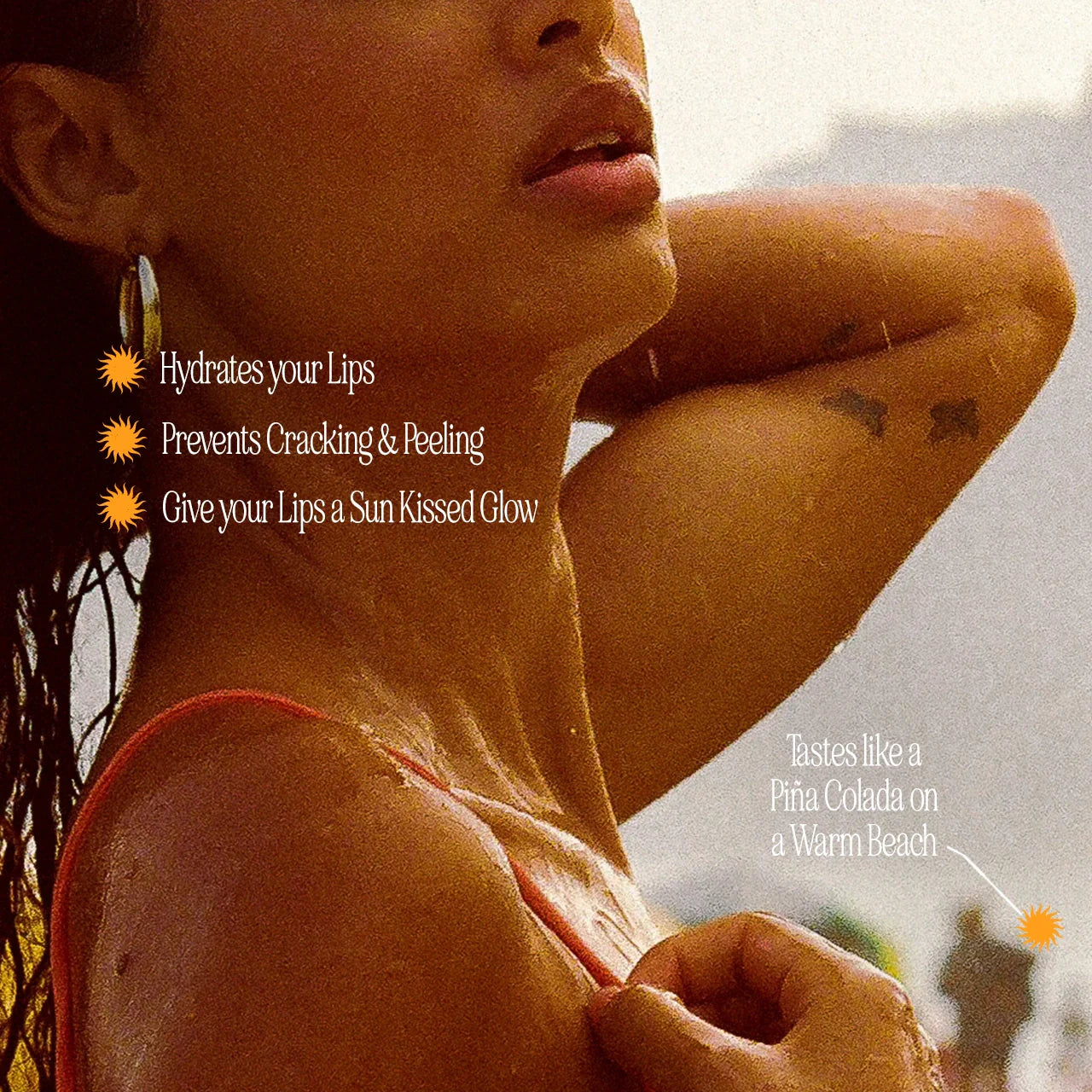 Instantly nourishes and hydrates your lips, giving them a natural sun kissed glow. Protect while enjoying the subtle flavor of a Pina Colada on a sunny day.
