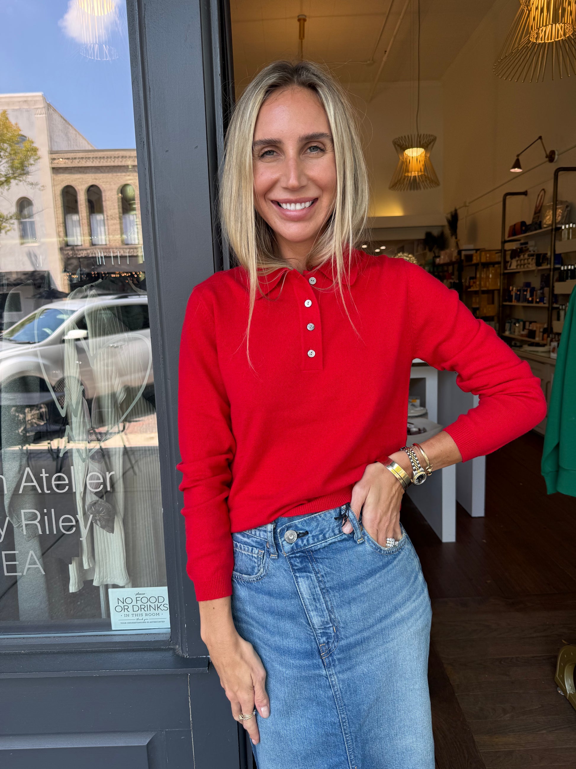 Make a statement in the Jumper1234 Plain Polo in Rose, a vibrant bright red cashmere sweaterdesigned to bring energy and sophistication to your wardrobe. Crafted from 100% premium cashmere, this luxuriously soft knit features a classic polo collar for a modern twist on timeless style.
