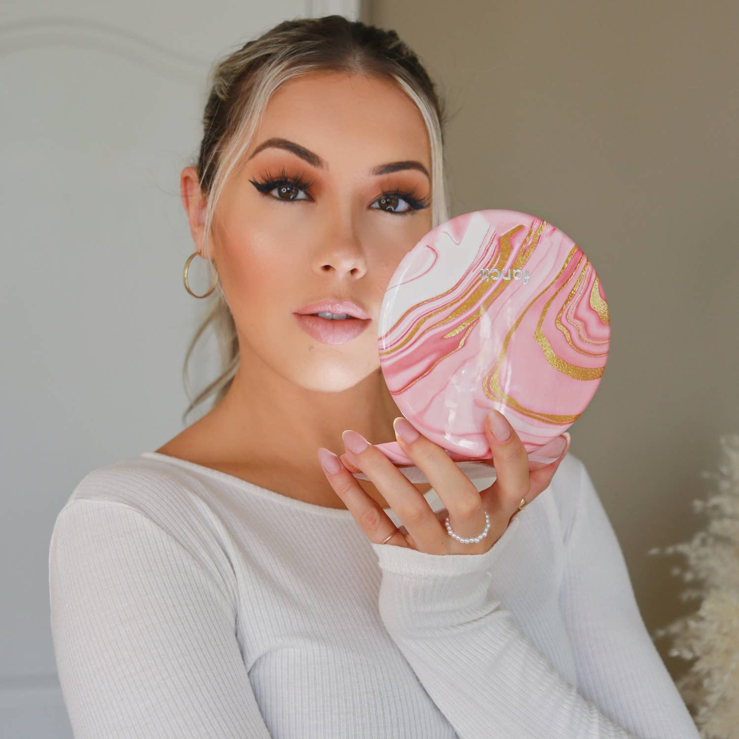 These all-new Taylor-lighted compact mirrors are giving us serious mid-century modern energy. This handy compact will light up your life for effortless makeup or skincare touch-ups everywhere those go-go booties take you.