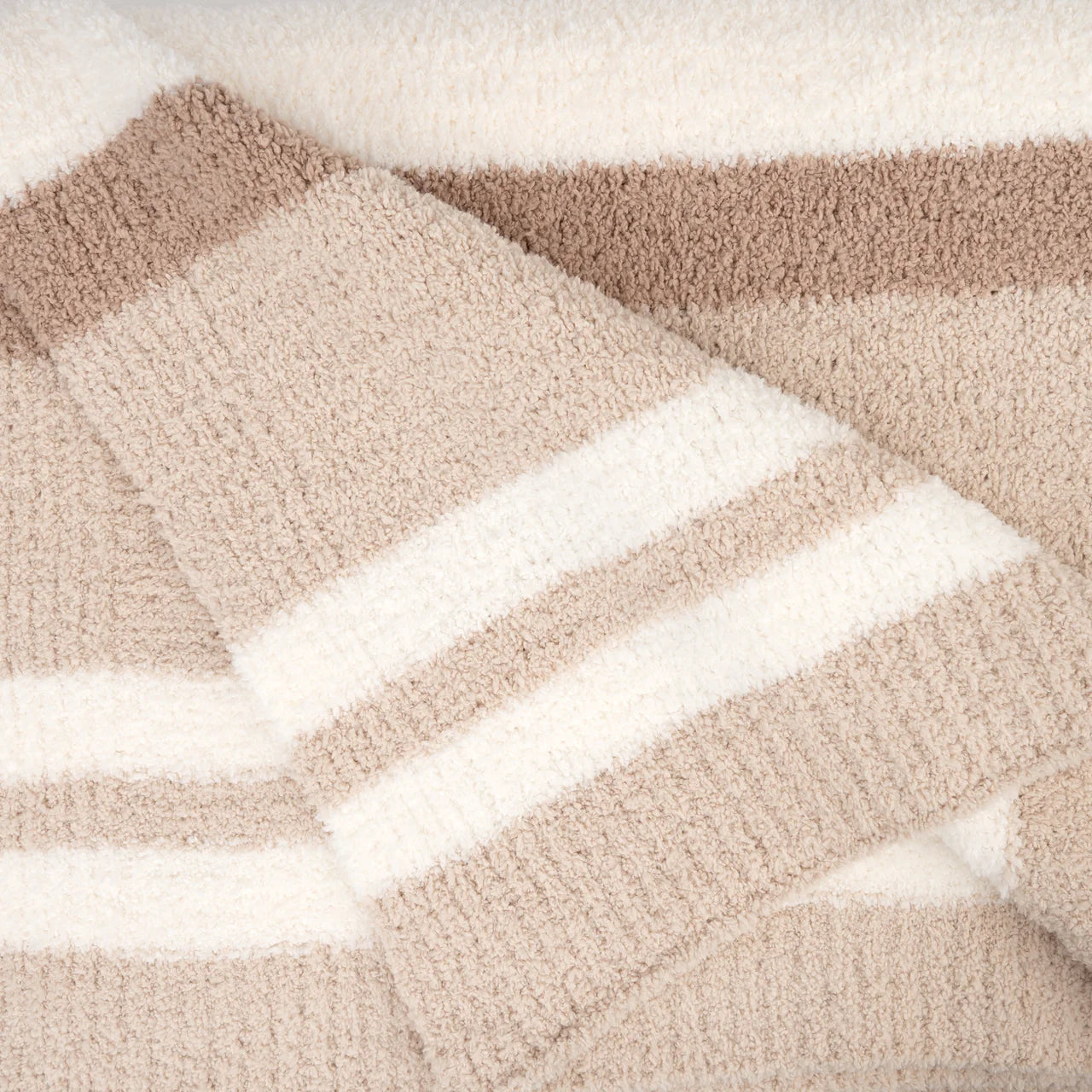 If you love the weight of our Solid Throw, but are looking for a classic pattern, the Multi Striped Throw is what you want! The clean and classic stripes make this throw truly special. The Multi Striped Throw is available in three stunning color palettes. A bold mix of wheat, black and chestnut, a dreamy, neutral mix of malt, crème and wheat, and a handsome mix of dark indigo, soapstone and vintage blue. We won’t judge you for wanting one of each. If you’re looking for a gift for a special someone who could use a little extra comfort in their life, look no further than the Multi Striped Throw.