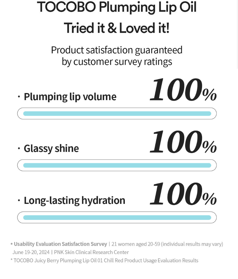• 100% satisfaction in lip volume, gloss, and moisturization.