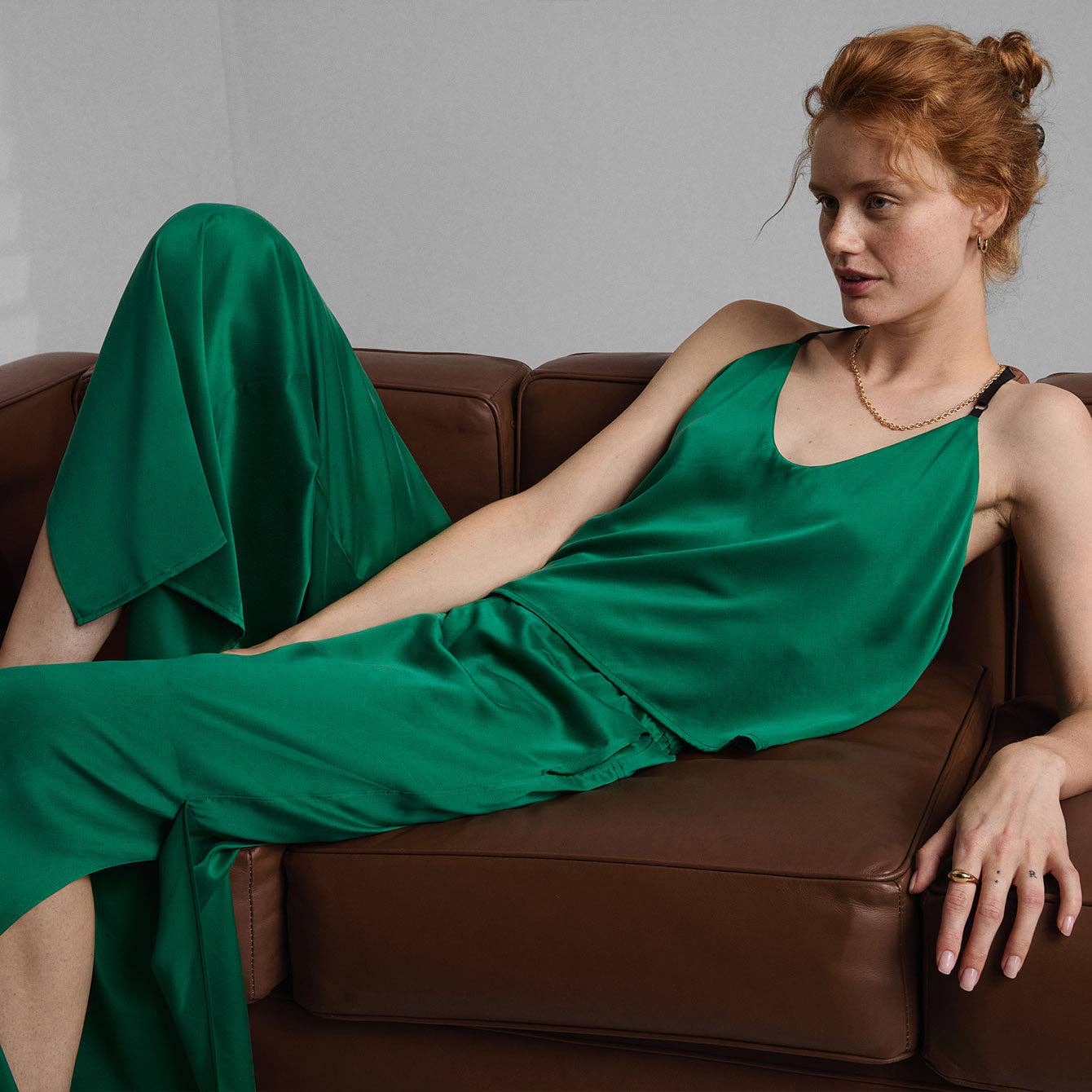 The same silky goodness you love from our pant set, with a fresh update and a bit of extra skin. You'll look so good, your S.O. won't even notice the kelp face mask you're wearing.